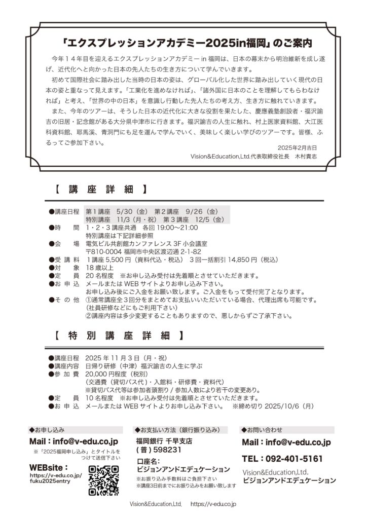 ②講座内容は多少変更することもありますので、悪しからずご了承下さい。